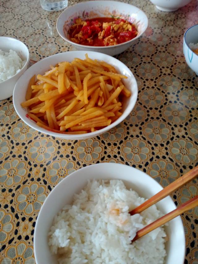 今天在我妹妹家吃的饭,给我炒了两个菜,吃的太