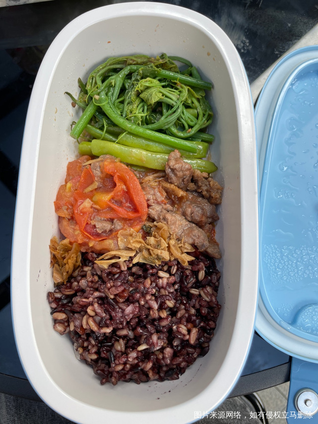 午餐:粗粮饭+番茄牛肉+炒四季豆