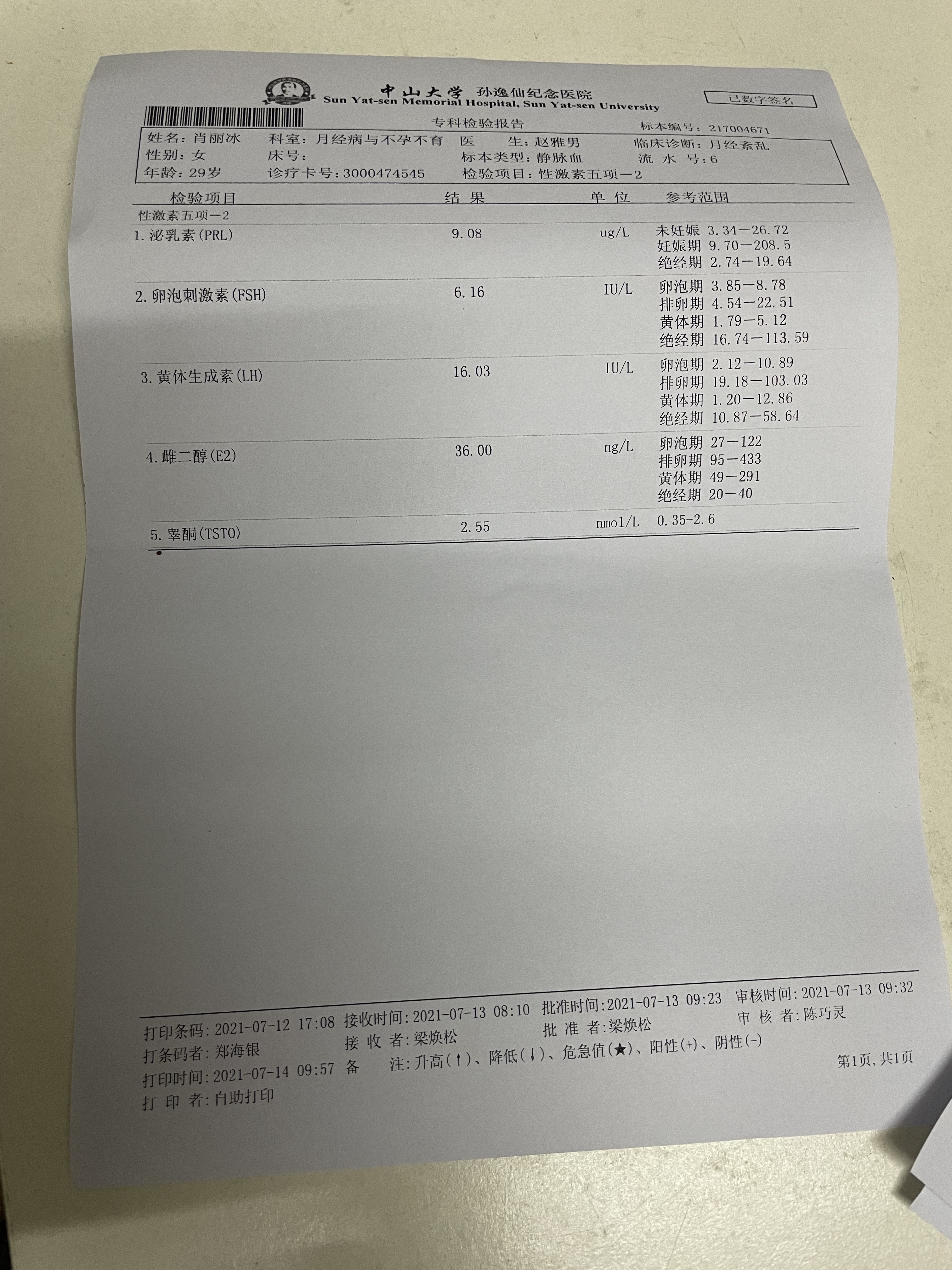 多囊卵巢综合征多年目前备孕月经来的第四天检查