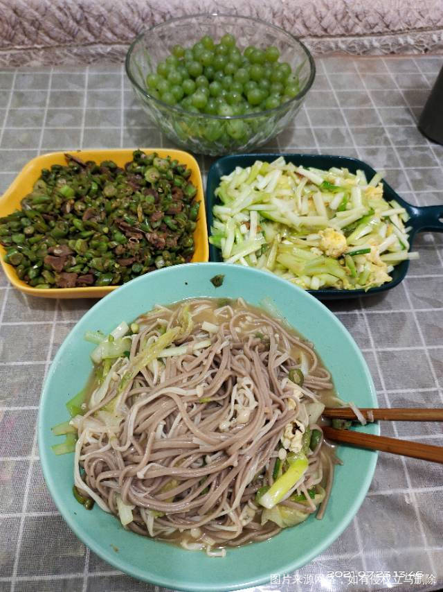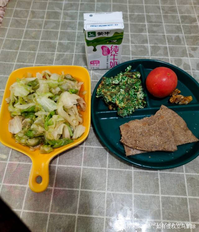 早,全麦饼+韭菜鸡蛋+核桃仁。 午,牛肉面。