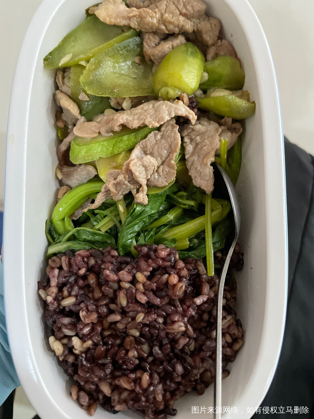 午餐:粗粮饭+青菜+炒丝瓜+西葫芦