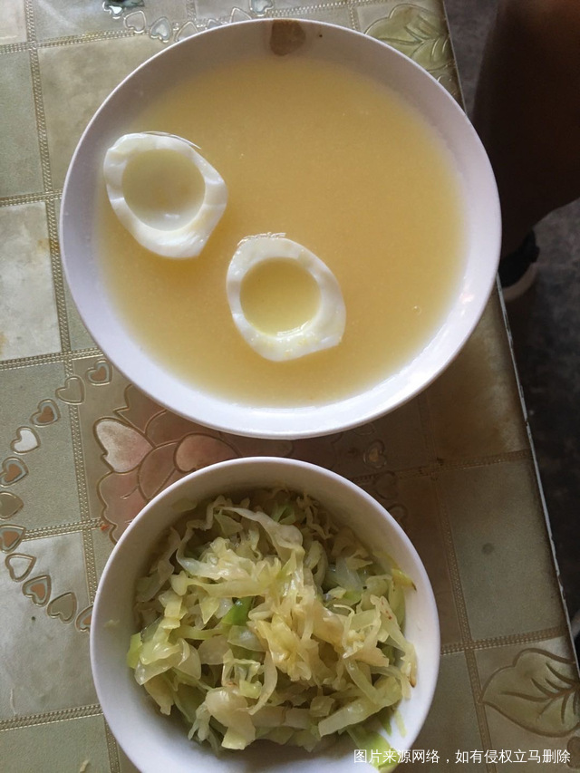 早上五公里早餐玉米粥一个鸡蛋白小碗炒包菜