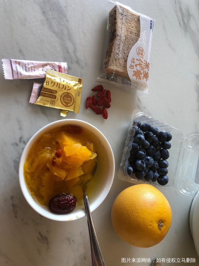 #第6天# 每天雷打不动的保健品早上一碗南瓜一片黑麦100G蓝莓10颗枸杞子,一个西柚