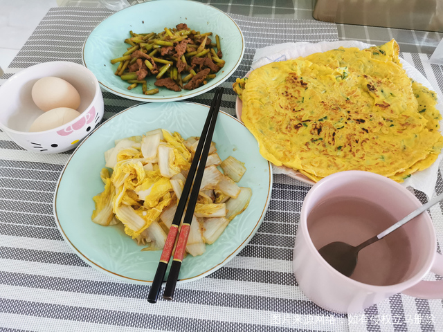 早上豆浆+中午涮锅+晚上小米粥、西红柿炒葫芦