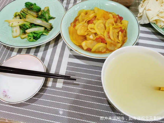 #第2天# 早餐一块饼干+中午黄焖鸡~黄焖茄子+晚餐小米粥、番茄葫芦;七夕快乐!