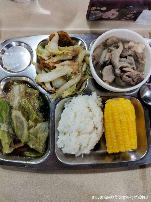 午,玉米半根米饭一两+白菜+生菜+蘑菇炖鸡块。