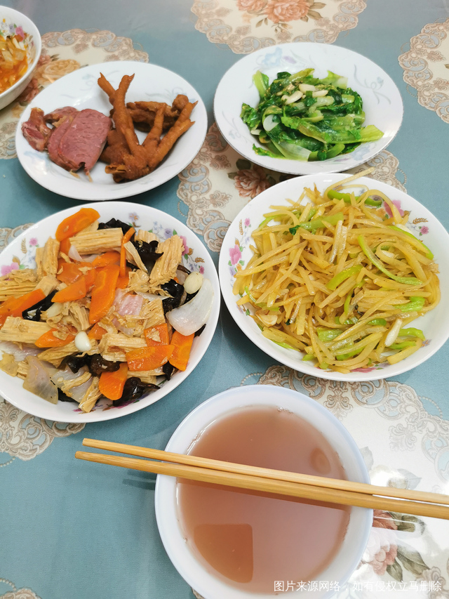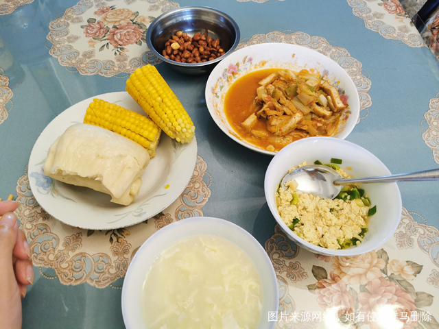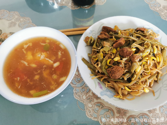 早上鸡蛋甜汤+中午卤面+晚上粥