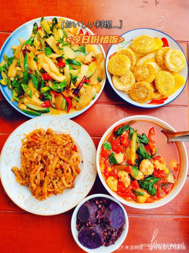 #第2天# 早餐,辣椒豆角炒牛肉+西红柿一个+脱脂牛奶一盒+紫薯玉米+全麦馒头半个。午,辣炒笋瓜+凉拌茄子+西红柿鸡肉丸青菜汤+紫薯米饭。晚,一个五香饼+炒茄子+西红柿汤一碗。