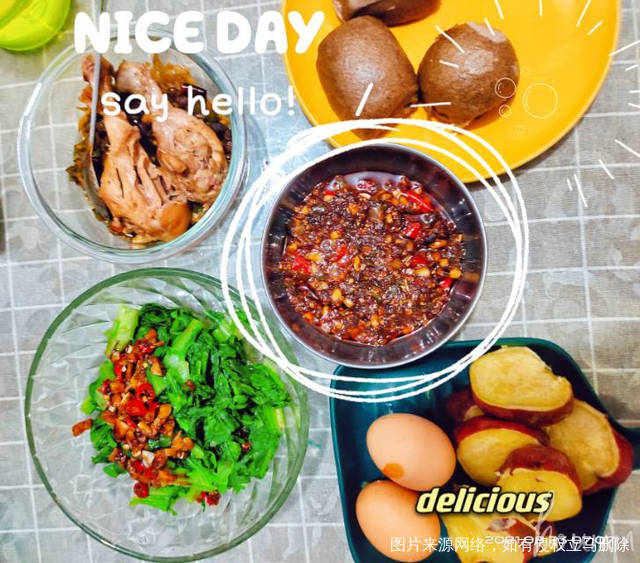 #第5天# 早,鸡蛋一个+鸡腿一个+菜+全麦馒头一个