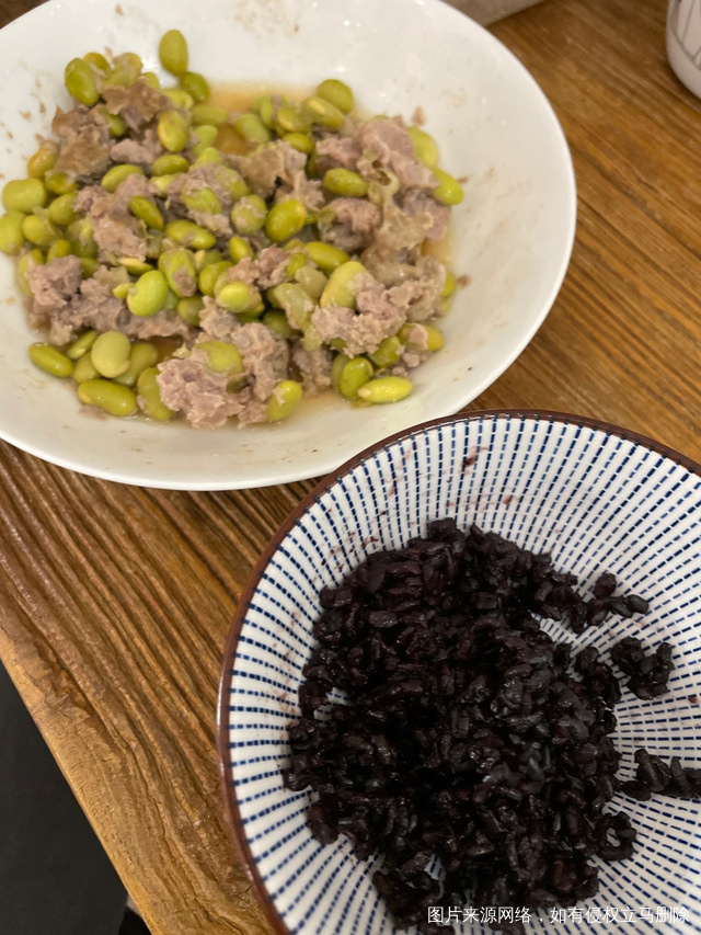 #第16天# 午餐吃黑米饭和瘦肉蒸毛豆