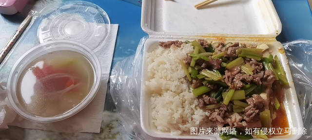 冬瓜豆芽番茄汤,米饭,芹菜炒牛肉,豆腐