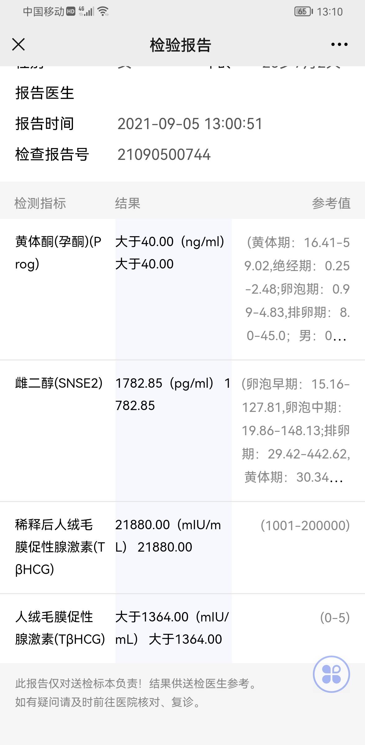 今天孕6周了,各项数值正常吗?暂时还没有做B超,抽血可不可以排除宫外孕的可能?
