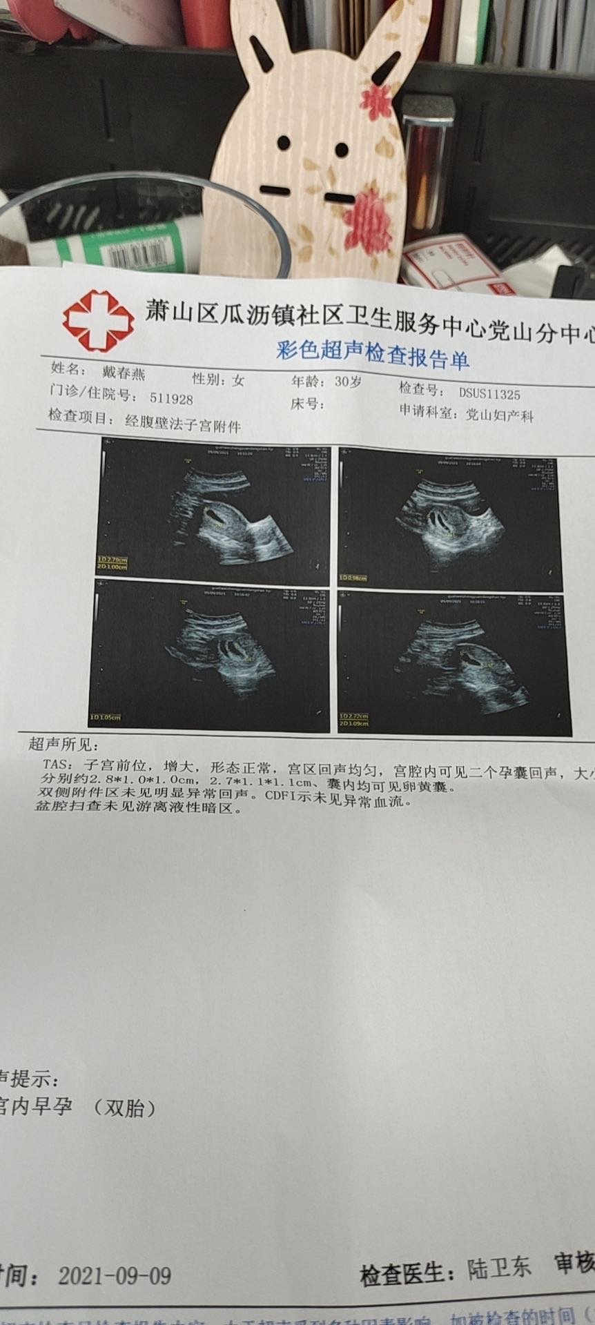 今天是怀孕16周去做了胎心监测还有做了一个B
