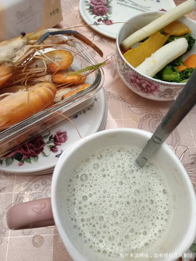 #第5天# 今日打卡,黑豆浆,虾,山药红薯