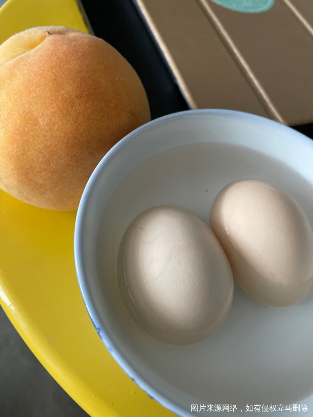 #第13天# 今天早餐,没有面包了,煮两只鸡蛋加一只黄桃