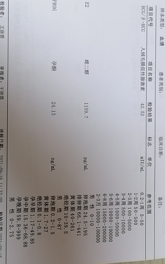 你好,我是9.8号中午12点的4bb冻胚,16号抽血查了怀孕了,但是孕酮跟雌二醇都挺高的对不对?那为什么hcg会偏低了一些