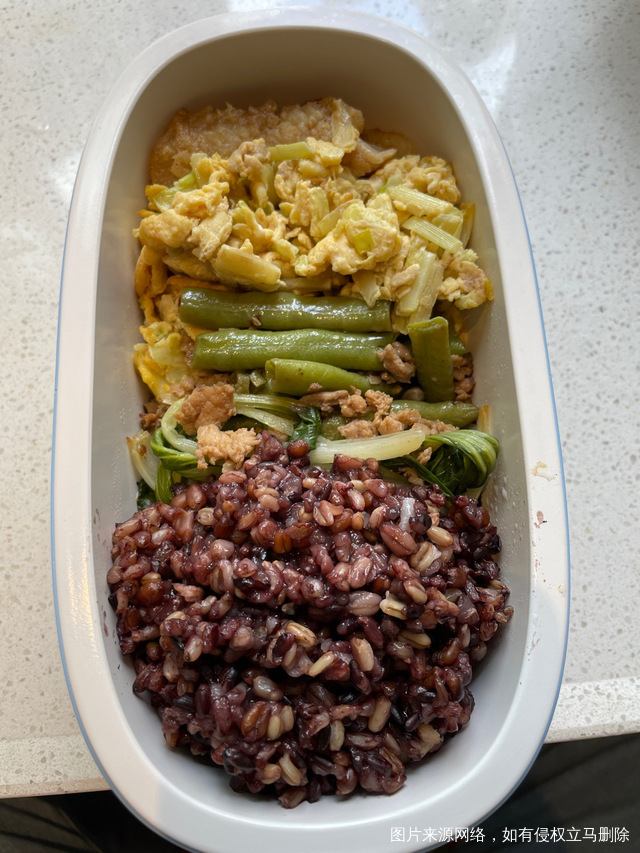 午餐装得好满,粗粮饭和一堆菜
