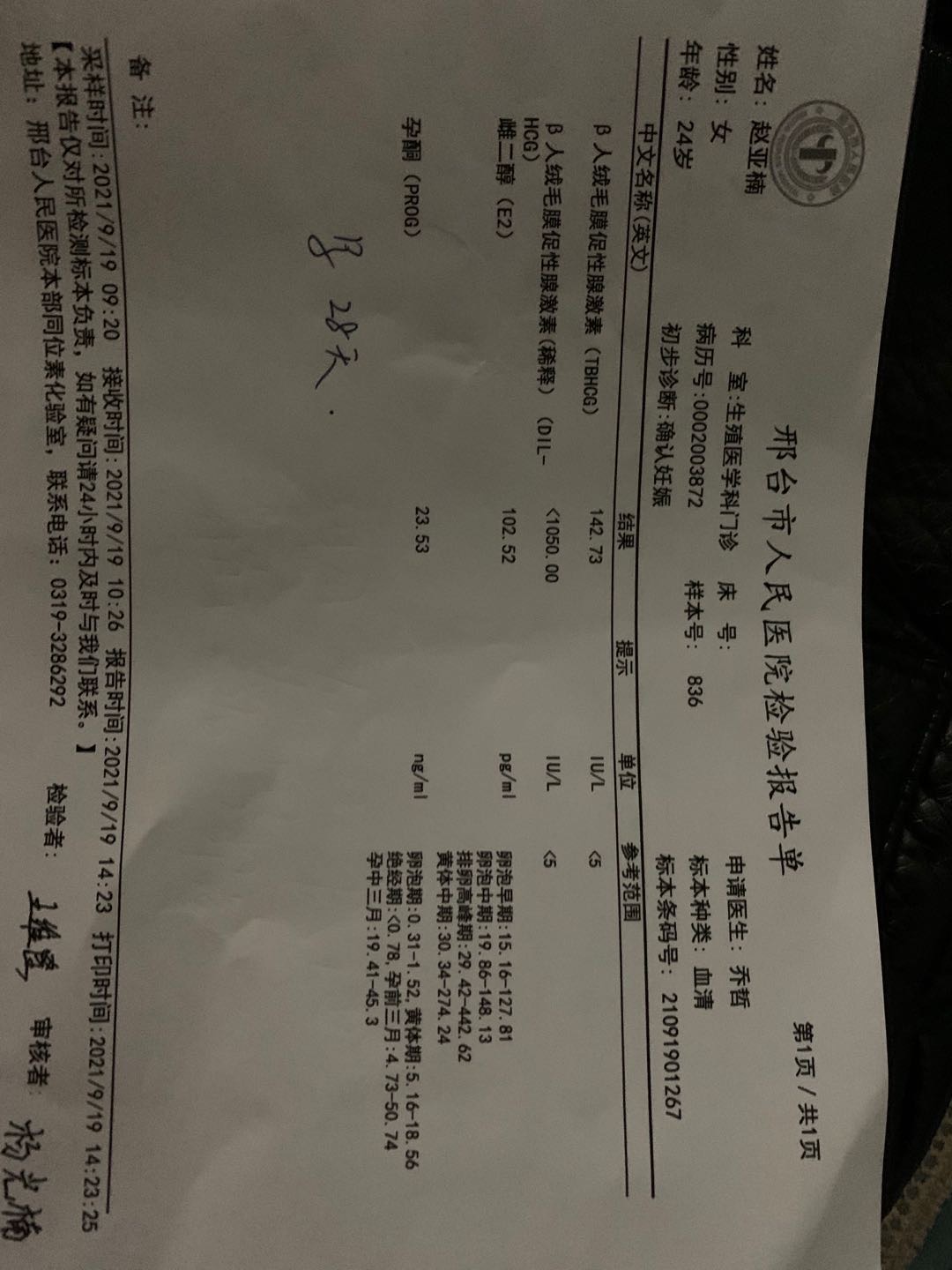 从你描述的情况和化验结果看,翻倍还可以,明天不需要再次测试,可以间隔四天到医院复查一下