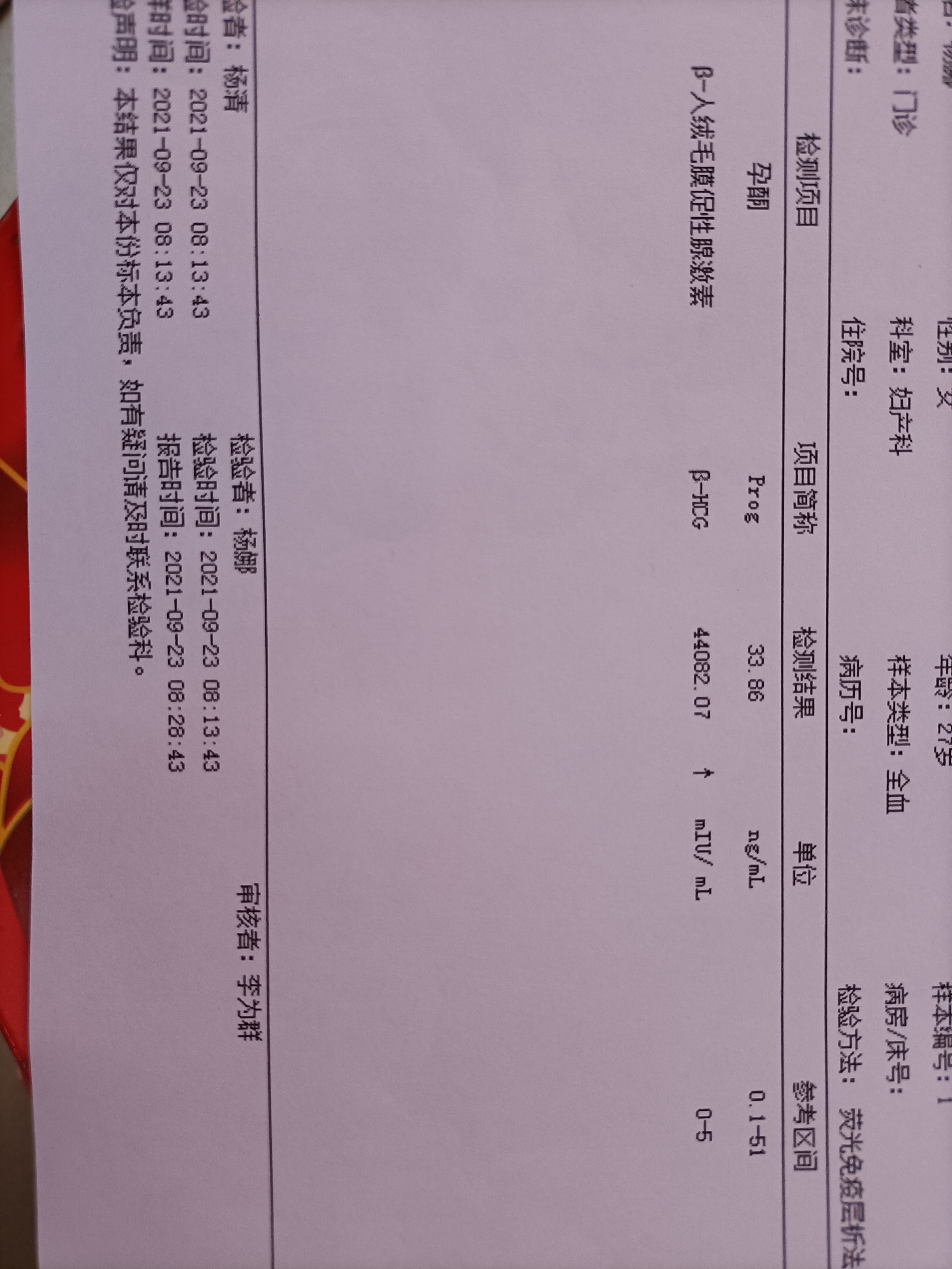 从你描述的情况和化验结果看,翻倍还可以,明天不需要再次测试,可以间隔四天到医院复查一下
