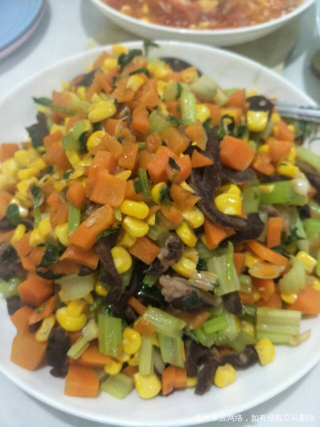 晚餐打卡,西红柿炒鸡蛋,酸笋,5颜6色的果蔬