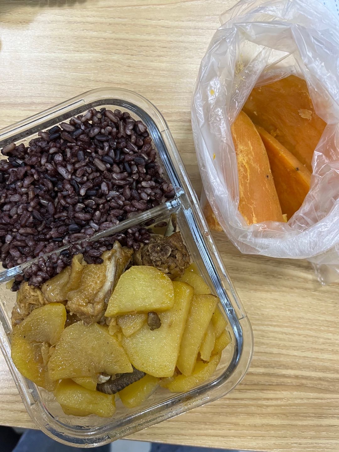 今日打卡土豆鸡块,三色米饭,红薯🍠
