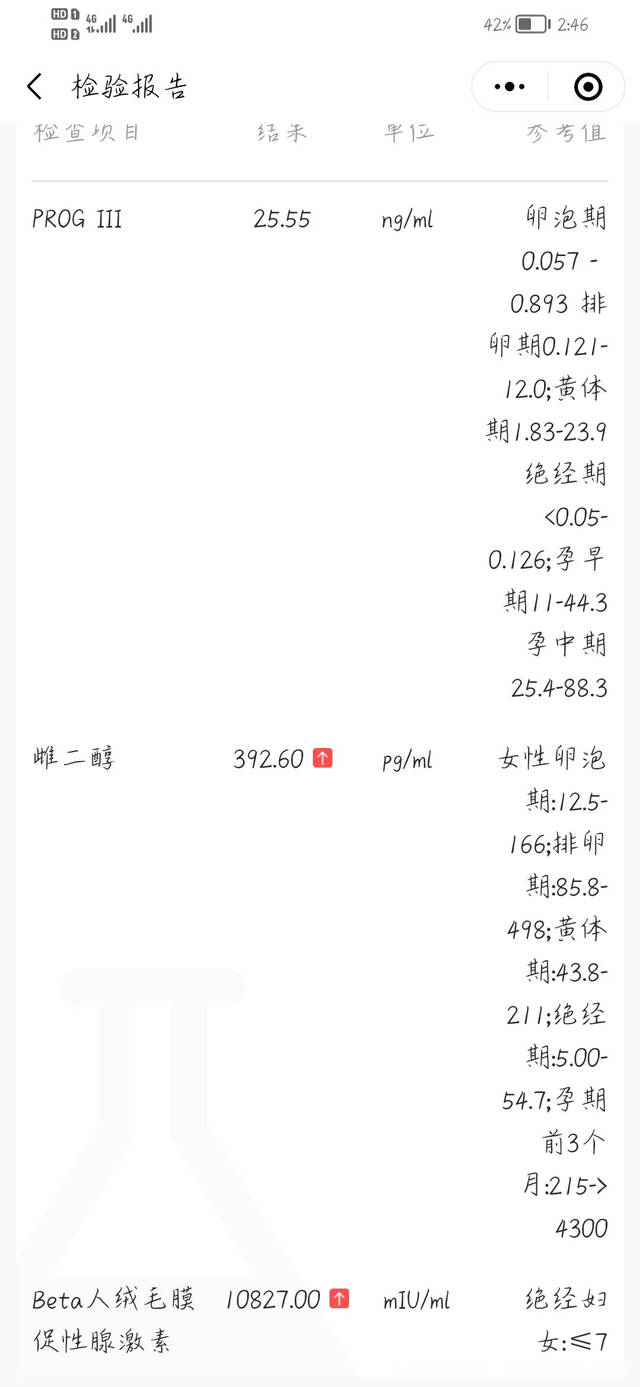 从你描述的情况和化验结果看,翻倍还可以,明天不需要再次测试,可以间隔四天到医院复查一下