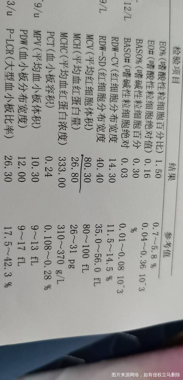 亲,你这个看不太清楚,好象是血常规吧,有没有地贫是要抽血作地贫基因检查才能知道