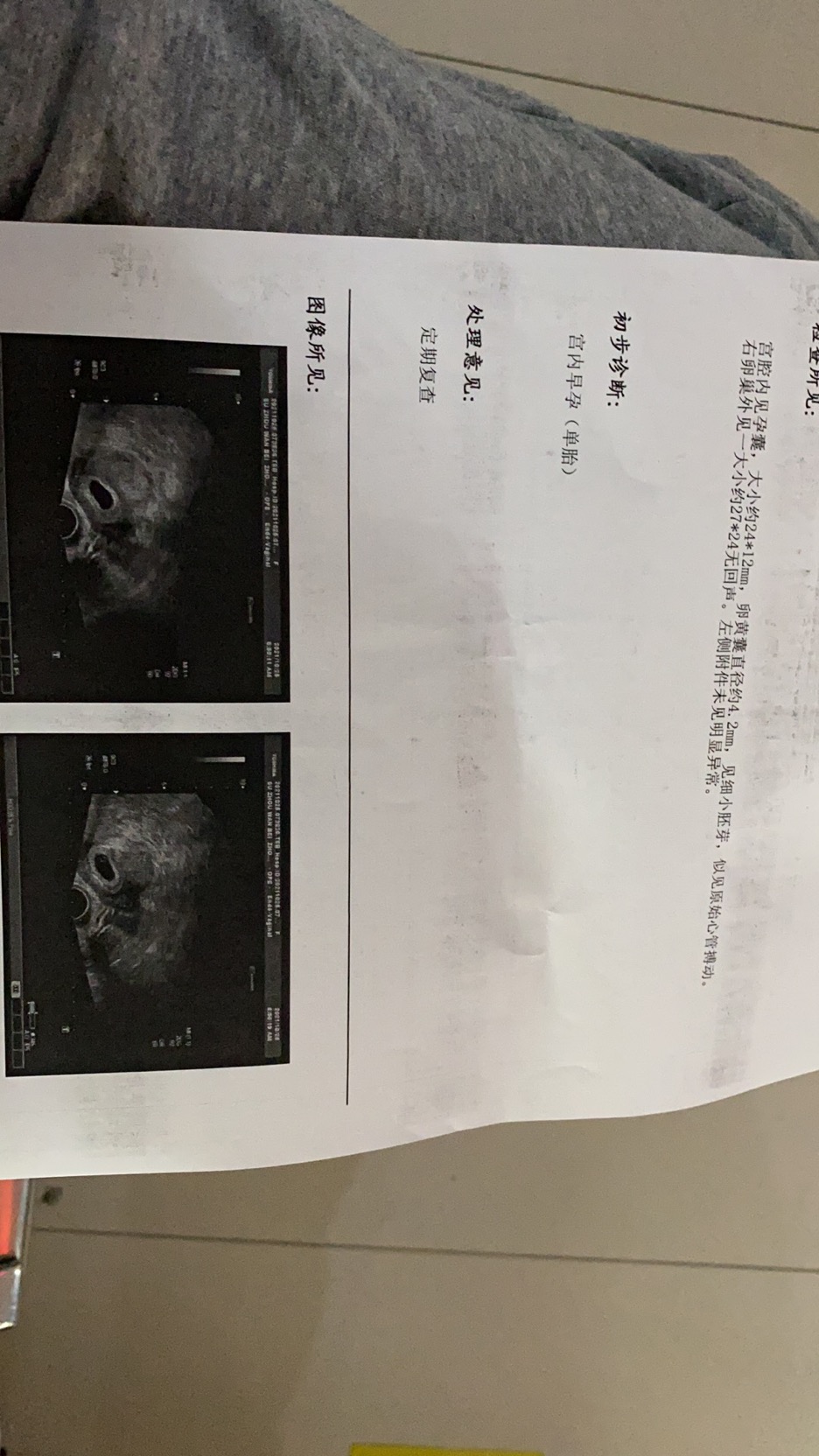 您好,图片是后28天第一次B超检查,麻烦帮忙看一下都正常吗?