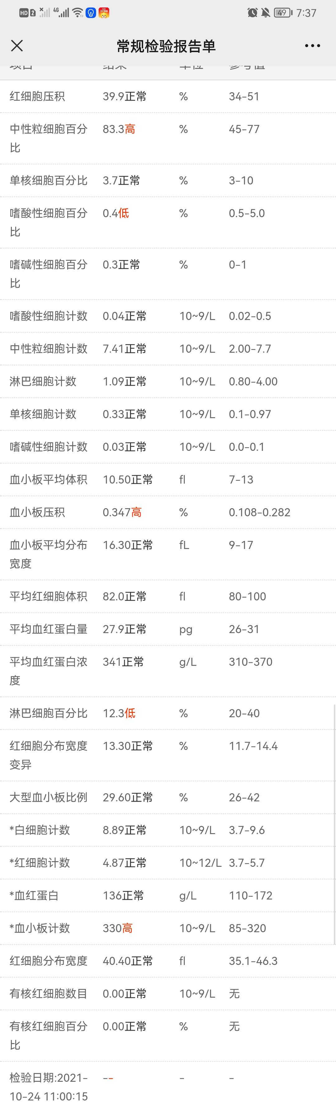 亲,你这个看不太清楚,好象是血常规吧,有没有地贫是要抽血作地贫基因检查才能知道