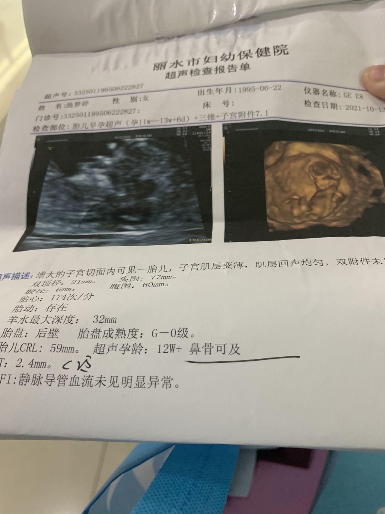 今天是怀孕16周去做了胎心监测还有做了一个B