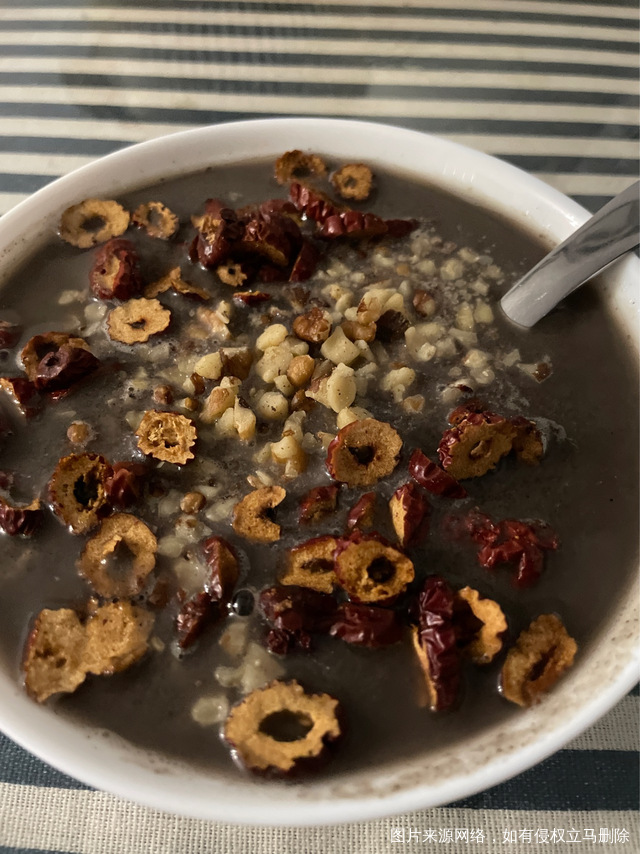 早餐:五谷杂粮糊,加一些碎核桃仁和红枣
