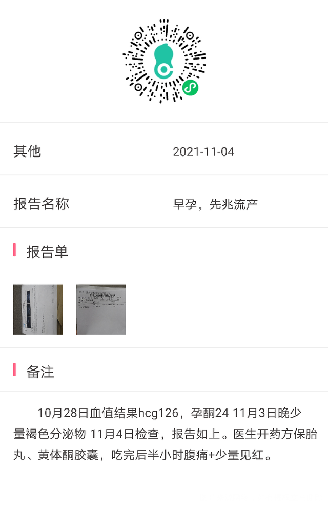 2021年10月28日医院抽血+阴超检查,结果未照到宫内孕囊,左侧附件区有混合回声团,大小约23*21mm,周边见血流信号,子宫直肠窝探及液性暗区,深约16mm。医生诊断左侧附件混合回声团考虑黄体血肿可能;
