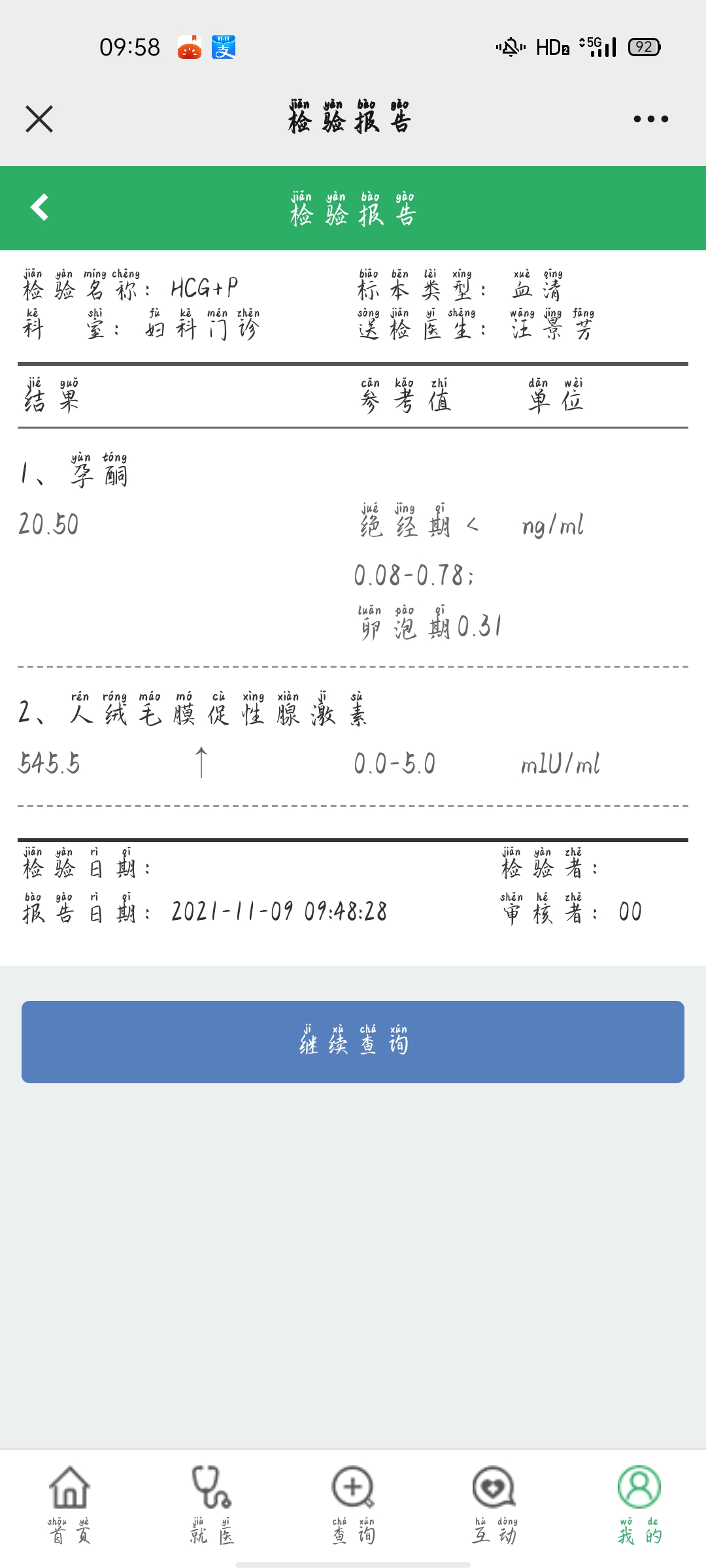 从你描述的情况和化验结果看,翻倍还可以,明天不需要再次测试,可以间隔四天到医院复查一下