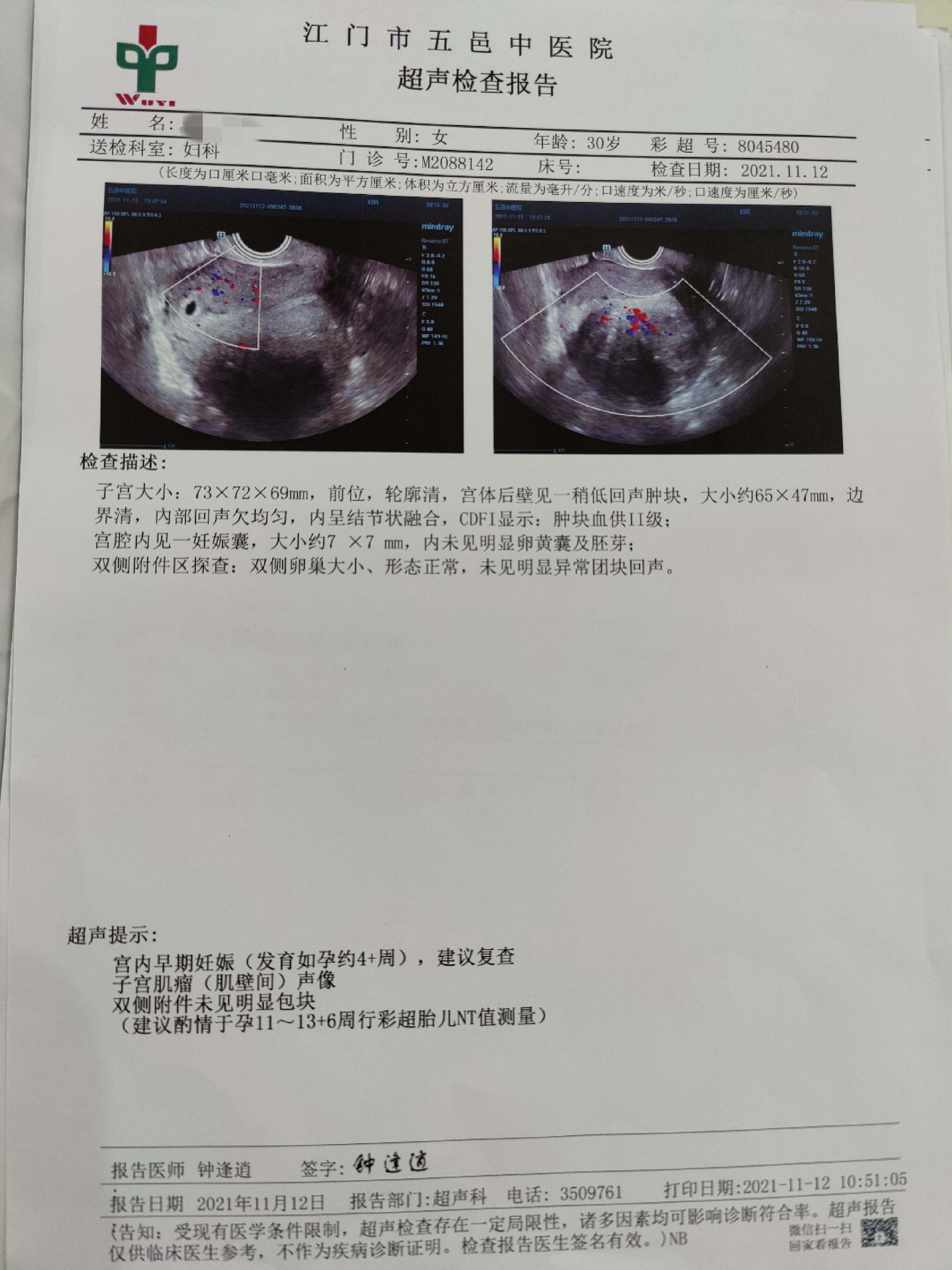 今天是怀孕16周去做了胎心监测还有做了一个B