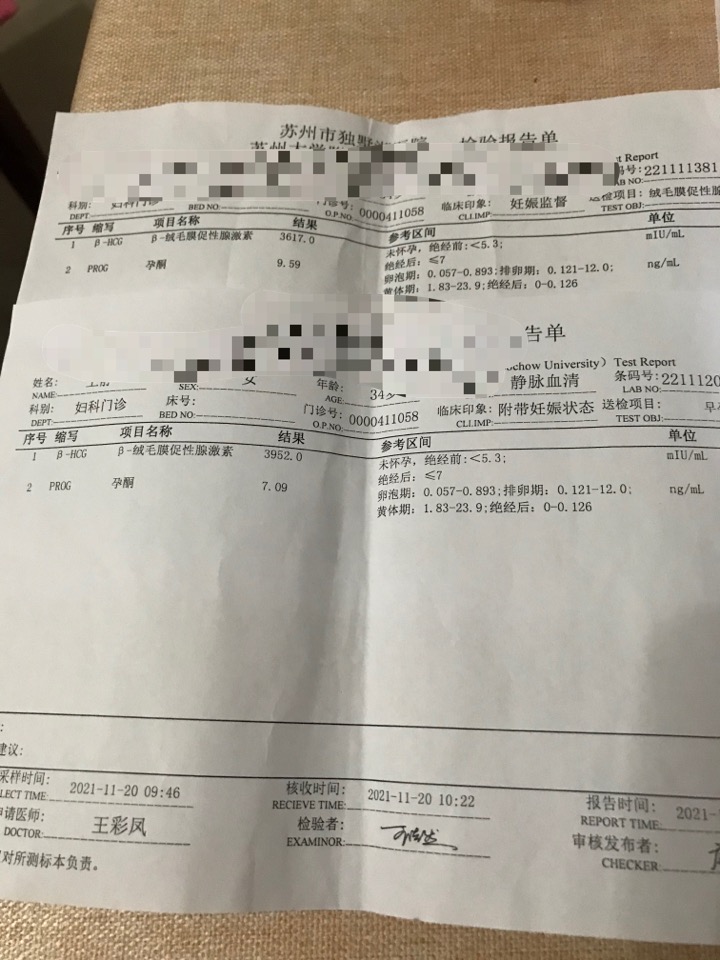 1006号末次月经孕5周和6周的hcg及孕酮
