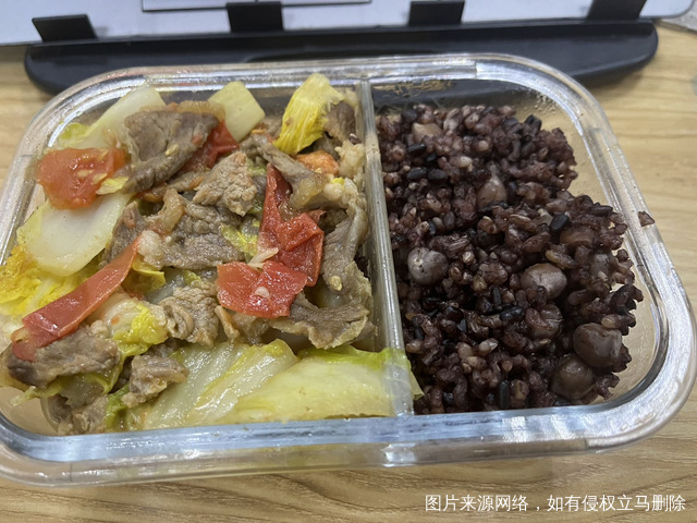 今日午饭,白菜牛肉,三色米饭🍚