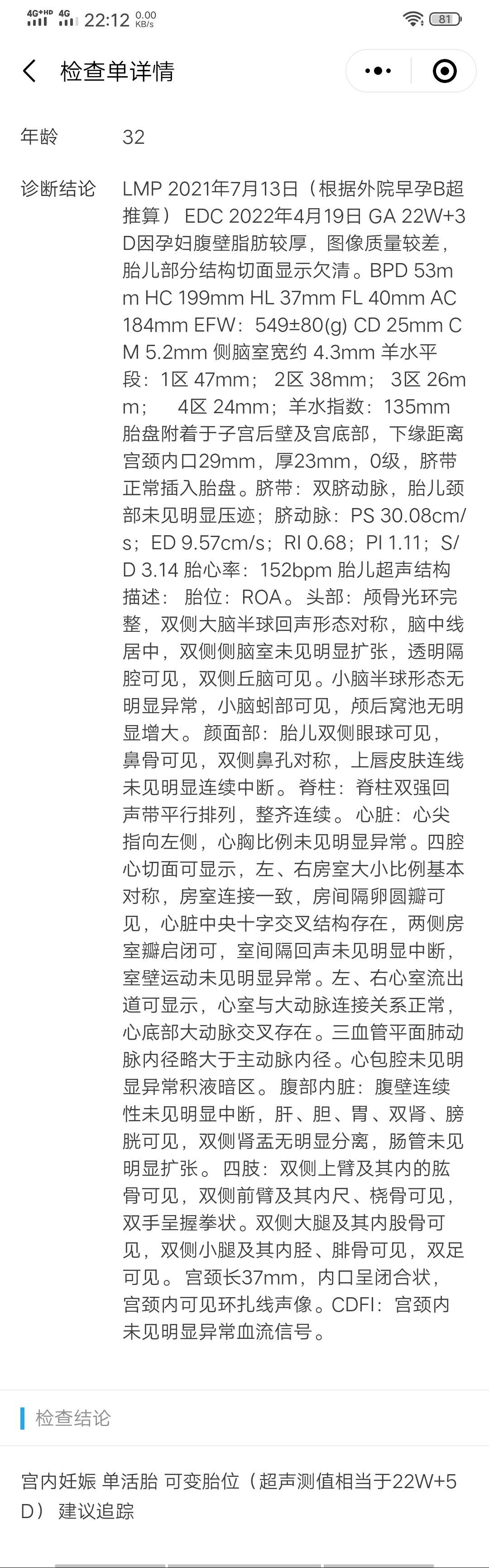 你好,请问一下,我的月经不规则,末次月经是7月5号,今天应该是23+2周,以前检查都是说按B超算小两天,今天去做大排畸,B超医生说让我按她推算的末次月经7月13号,那今天就是22+3周,我想了解一下,如果按这样说的话,我之前按7月5号做的检查结果不都是不准确了吗?这个推算到7月13号的末次月经我可以理解为是因为胎儿没长吗?谢谢。而且,这个B超,医生说胎儿是趴着的,那怎么能采集到面部资料,想不通。😄😄特请教各位老师。