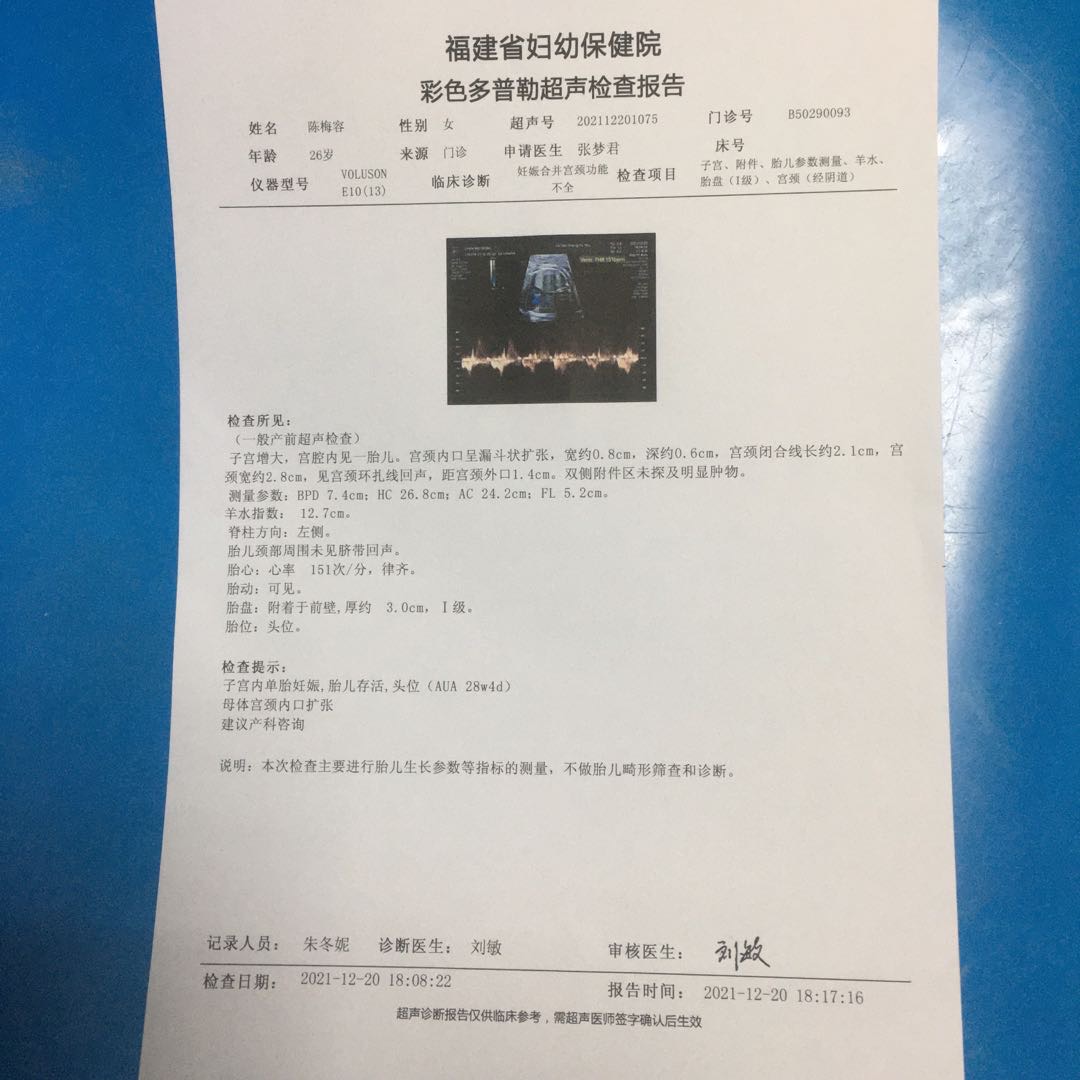 你好医生9号做的环扎手术昨天20号去复查彩超