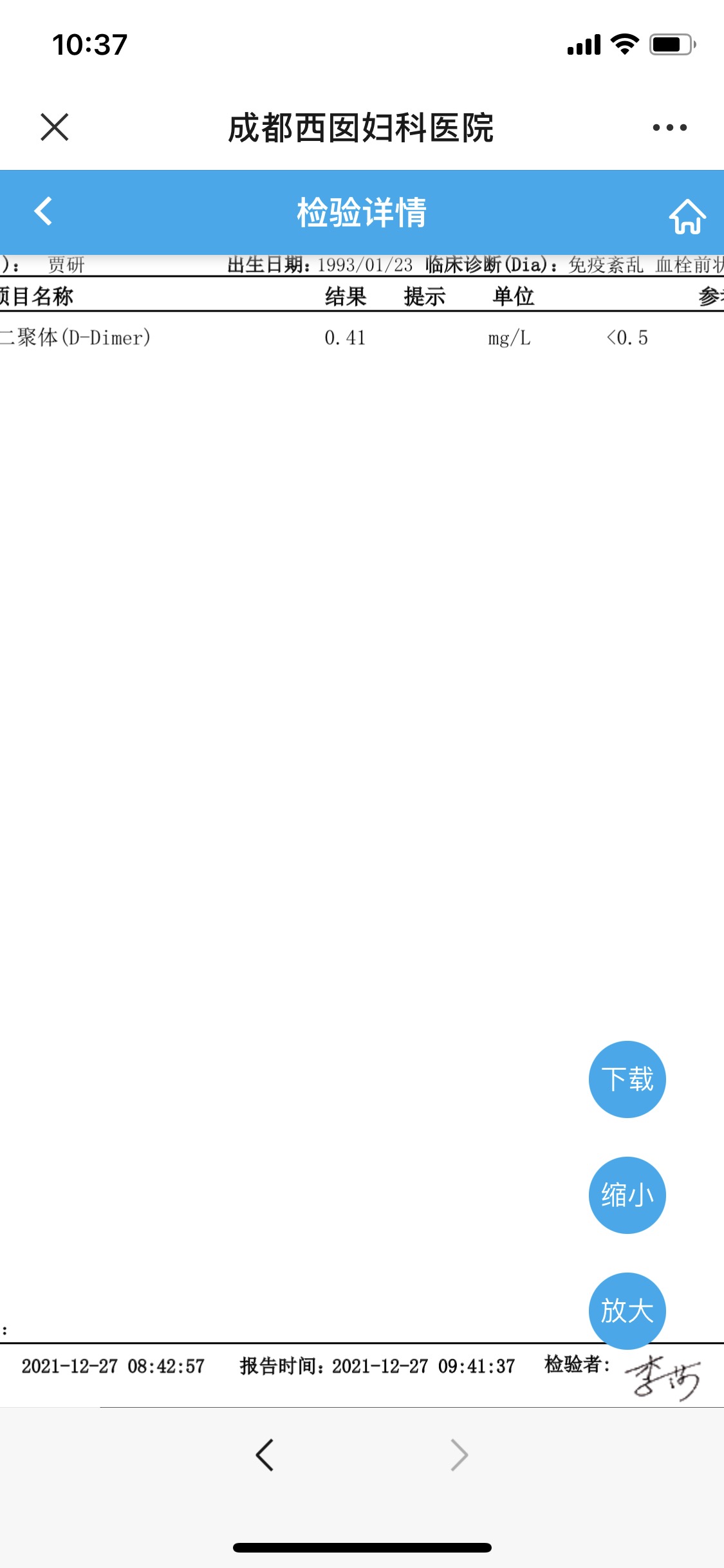 从你描述的情况和化验结果看,翻倍还可以,明天不需要再次测试,可以间隔四天到医院复查一下