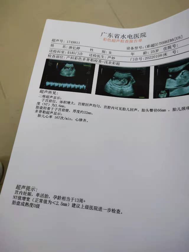 今天是怀孕16周去做了胎心监测还有做了一个B