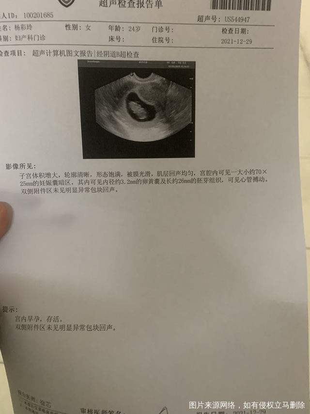 12月29日武警医院阴超,胚芽26mm