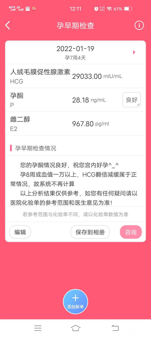 从你描述的情况和化验结果看,翻倍还可以,明天不需要再次测试,可以间隔四天到医院复查一下