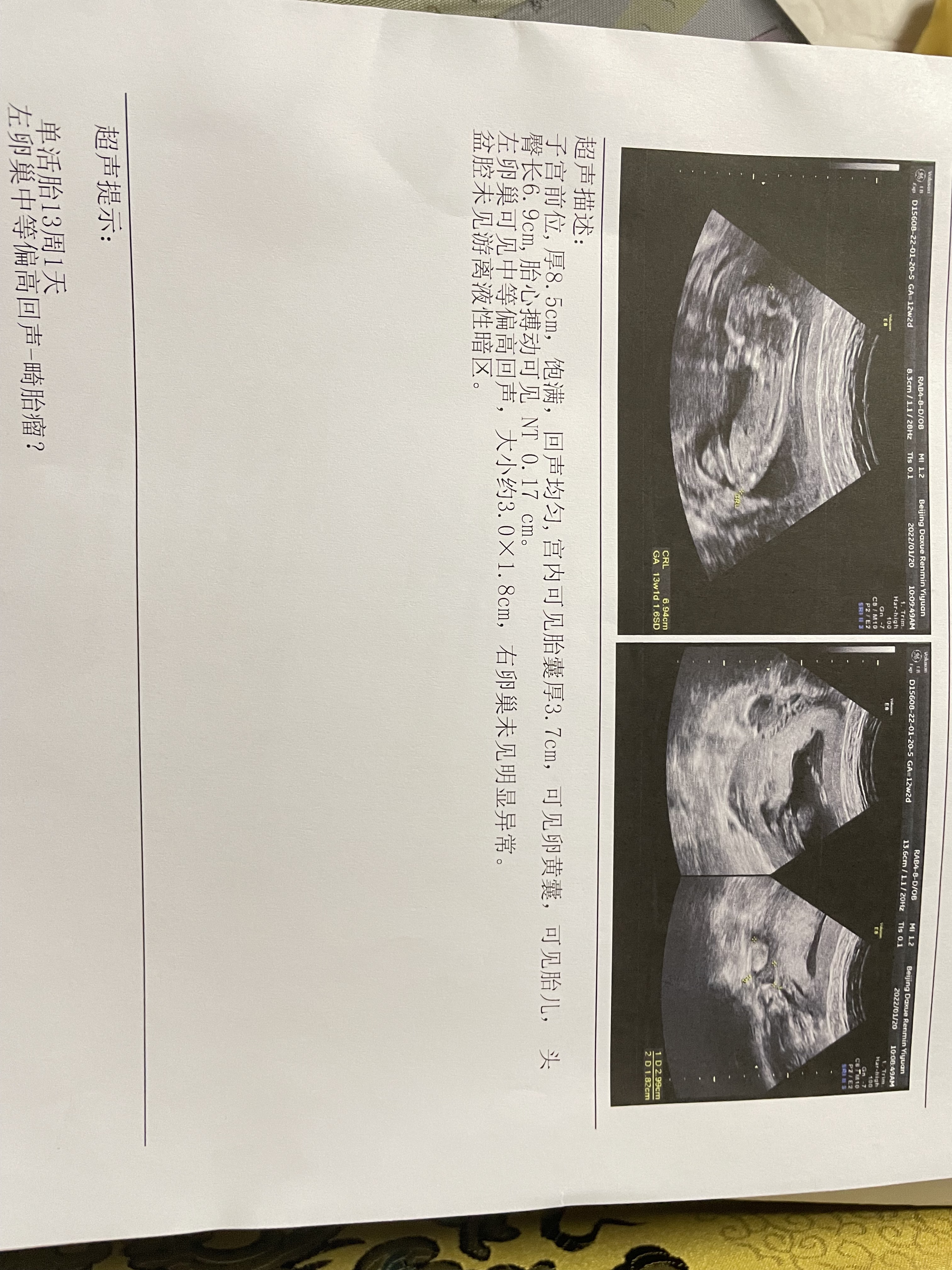 从新推的月经10.26号 今天做的NT 为啥别人的都是躺着的 我这个是趴着的 趴着的不是照不准吗 也没有显示羊水还有胎心率 现在这样正常吗