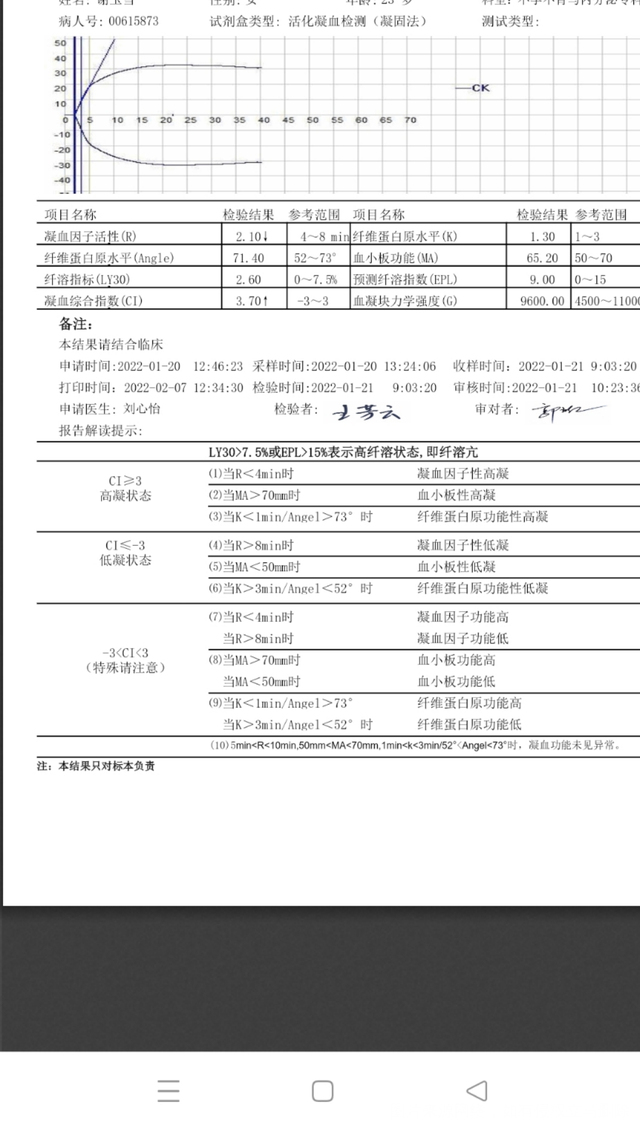 住院时查的血栓弹力图,医生没说什么,请问这是正常吗?