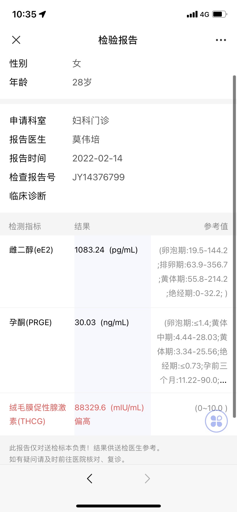 女28岁2020年6月生化过一个今天B超结果