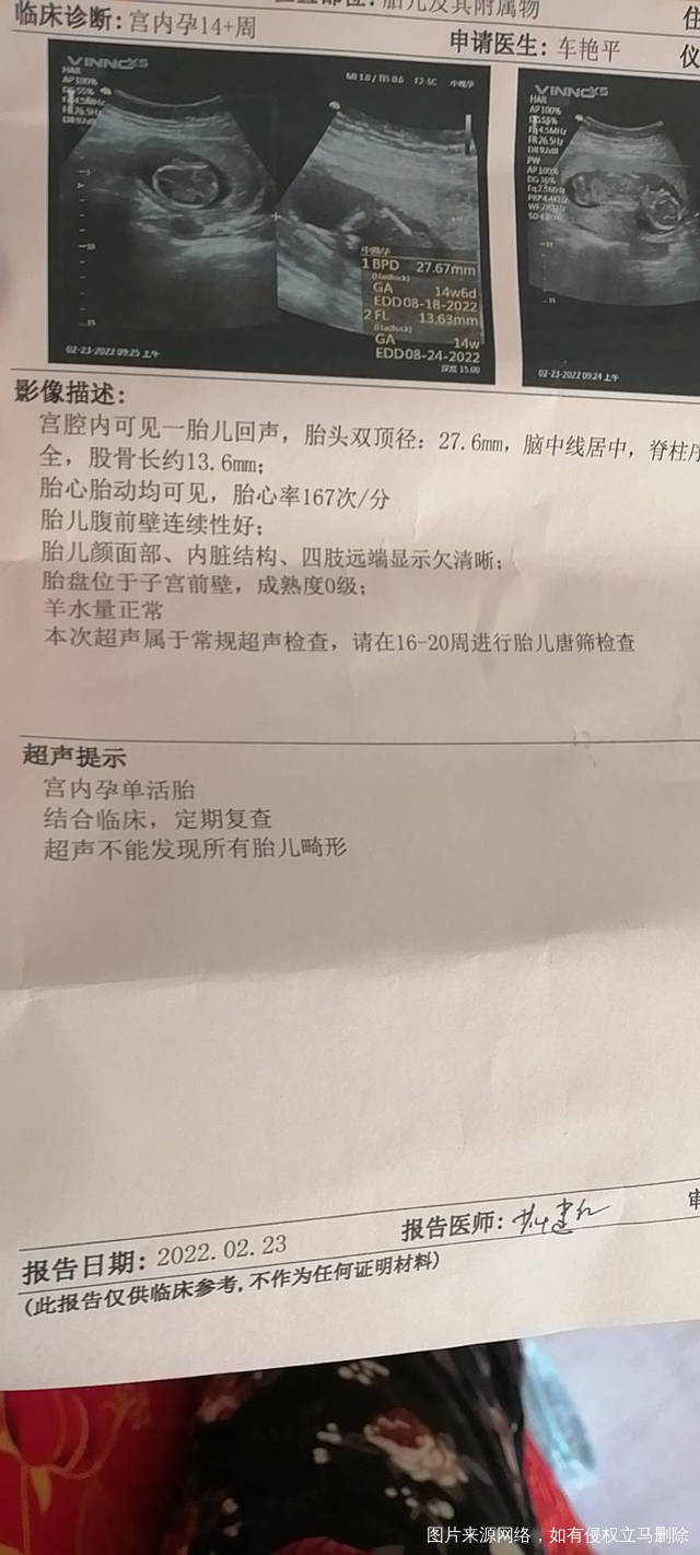 今天是怀孕16周去做了胎心监测还有做了一个B