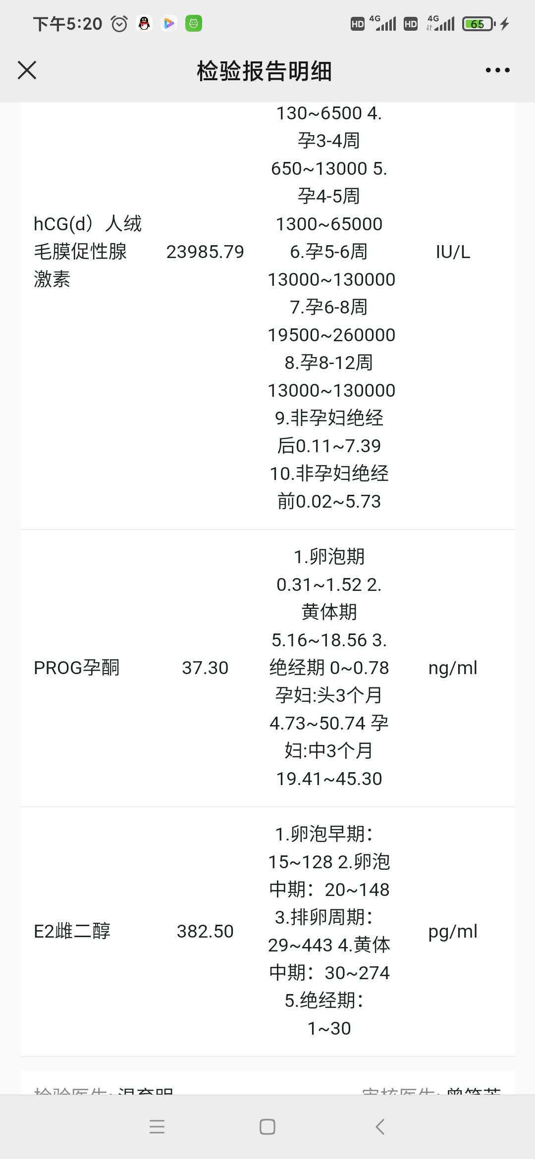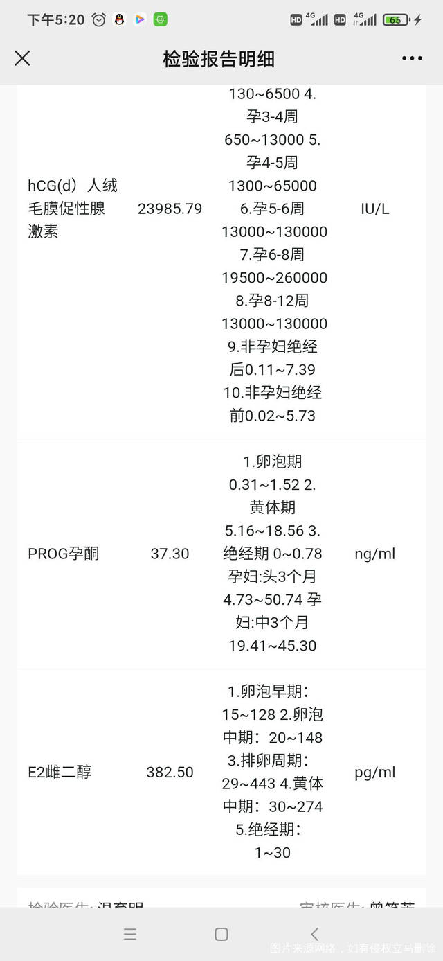麻烦医生看看我今天的验血报告,我是1月11号末次月经,现怀孕6周多