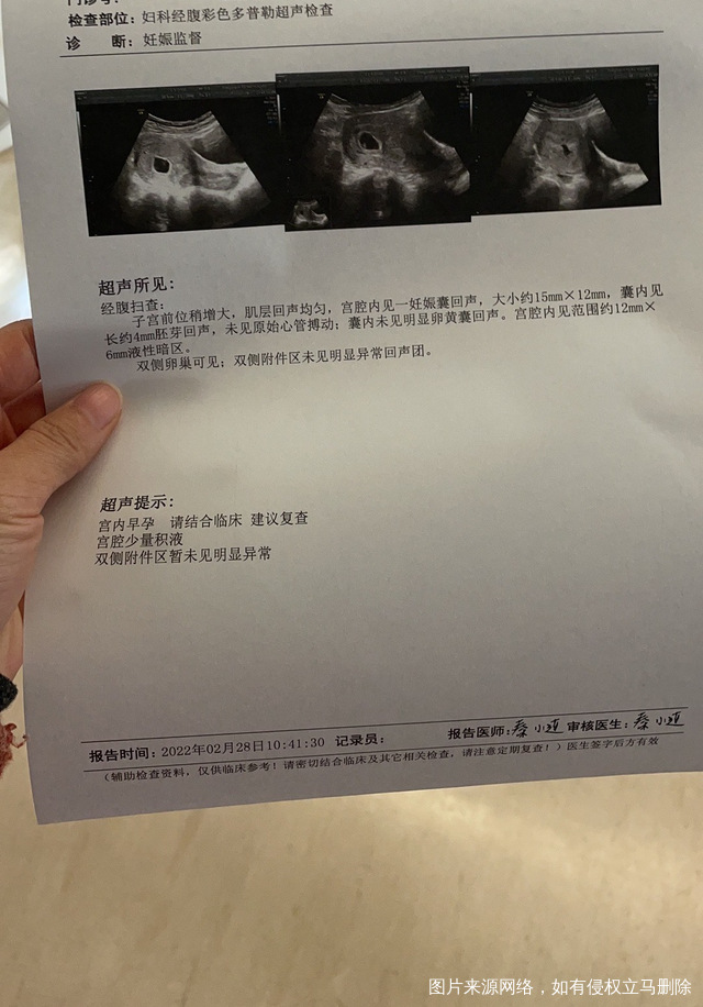女性30岁2月8号检测出怀孕2月21号阴超显