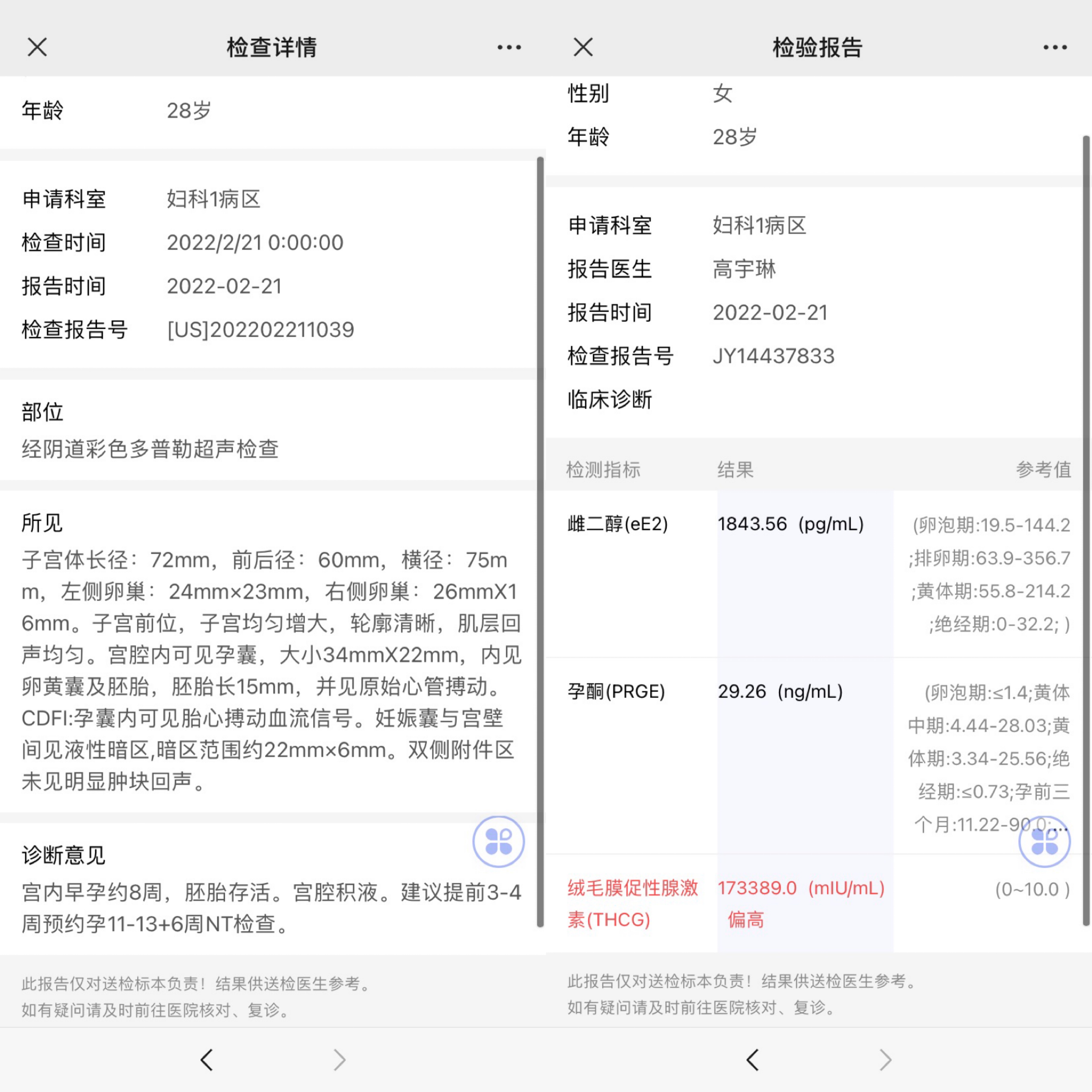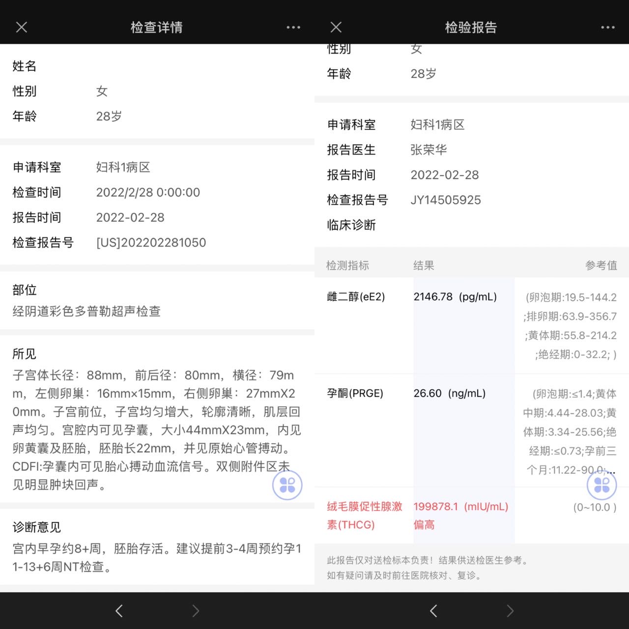 28岁20年生化一个以下是上周一和这周一检查