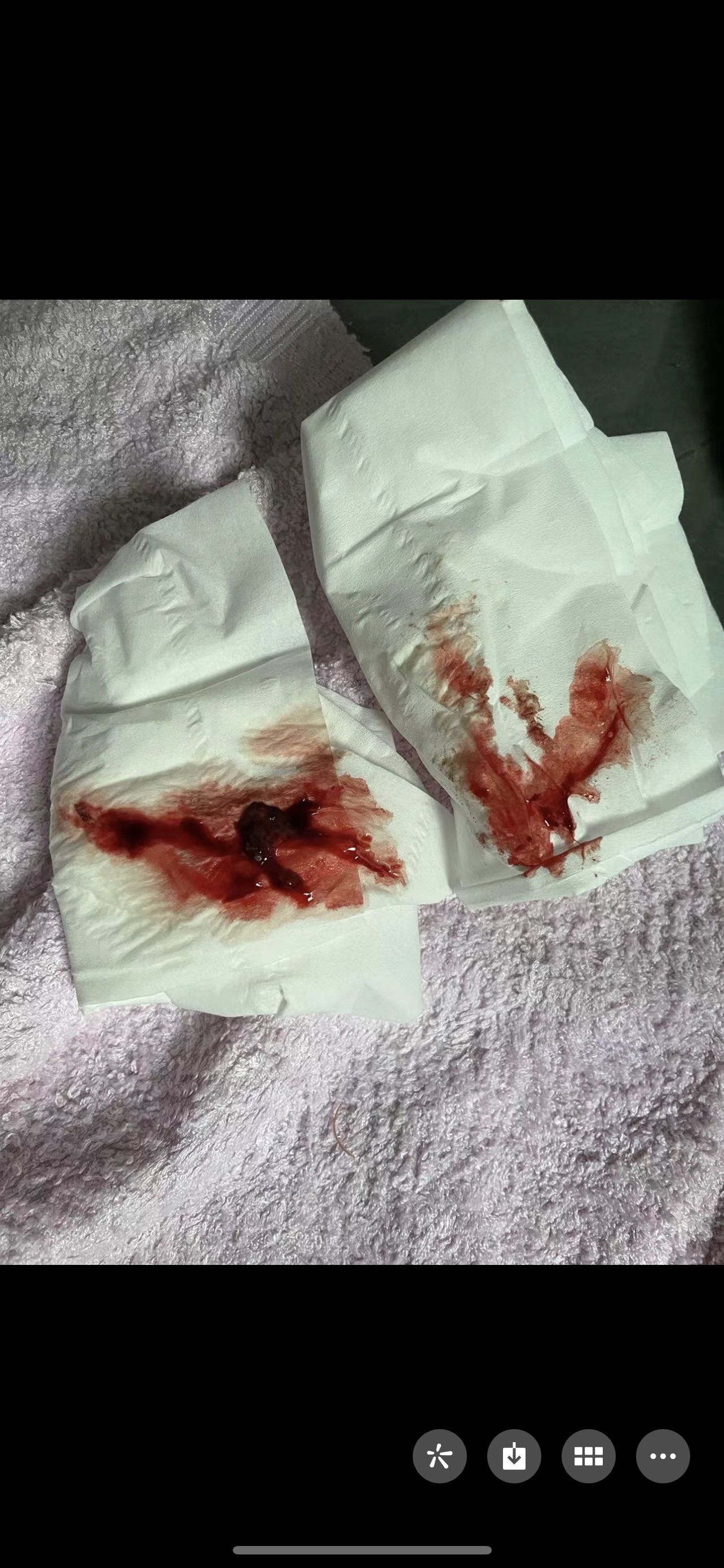 后17天出血去医院说不多 开了黄体铜针 然过两天等19天早上上厕所擦屁股又有血 感觉月经来的量